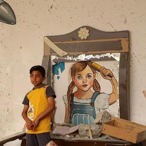 6月8日,兒童在加沙地帶中部一處難民營(yíng)附近畫(huà)有涂鴉的廢墟玩耍。
