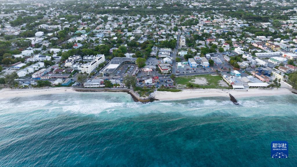 這是5月29日拍攝的巴巴多斯首都布里奇敦的海岸線(xiàn)風(fēng)光(無(wú)人機照片)。