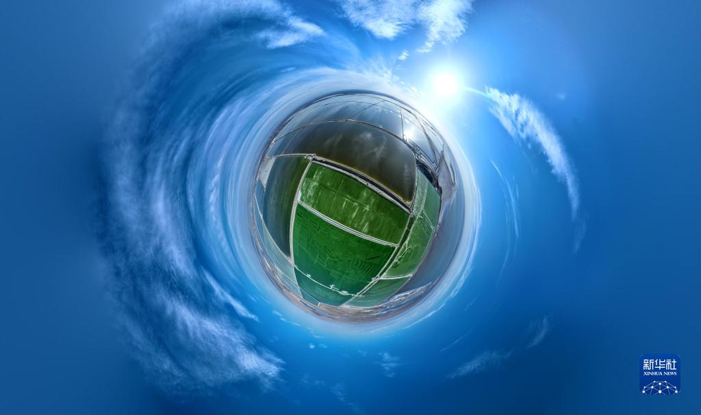 這是6月8日拍攝的察爾汗鹽湖景色(無(wú)人機全景照片)。
