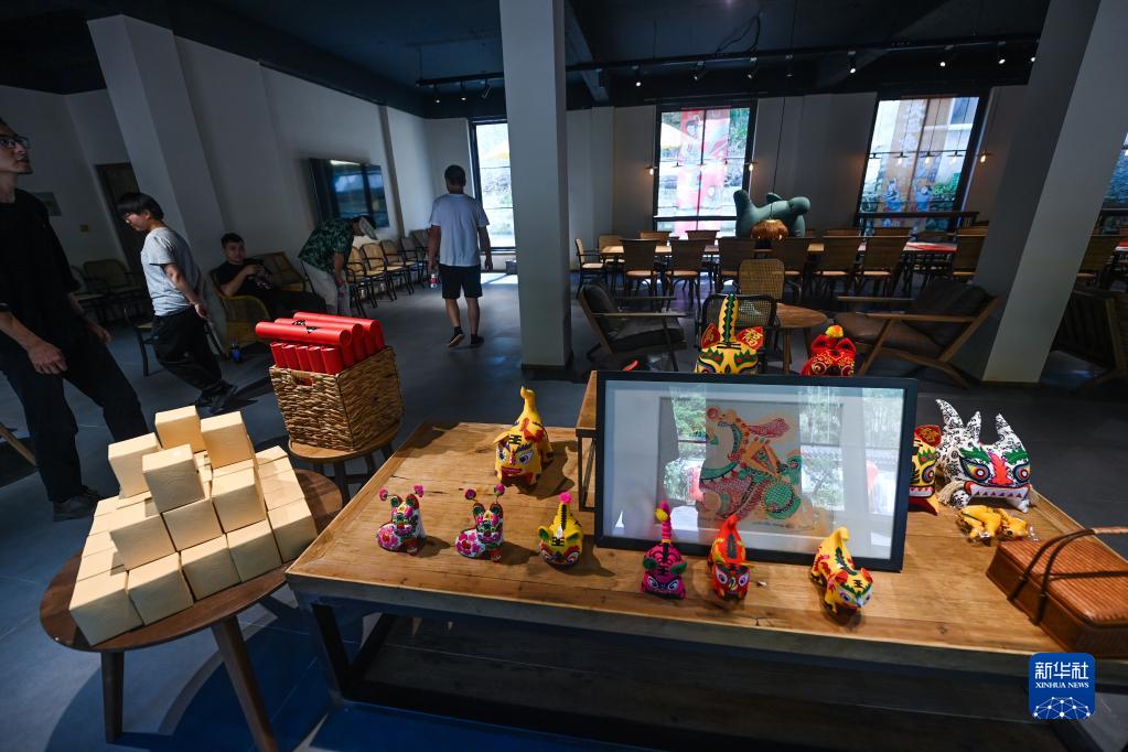 浙江省臺州市黃巖區嶼頭鄉布袋坑村全新設計打造的鄉村會(huì )客廳,既是特色手工藝品和農產(chǎn)品的展示平臺,也是當地百姓休閑聚會(huì )的場(chǎng)所(5月30日攝)。