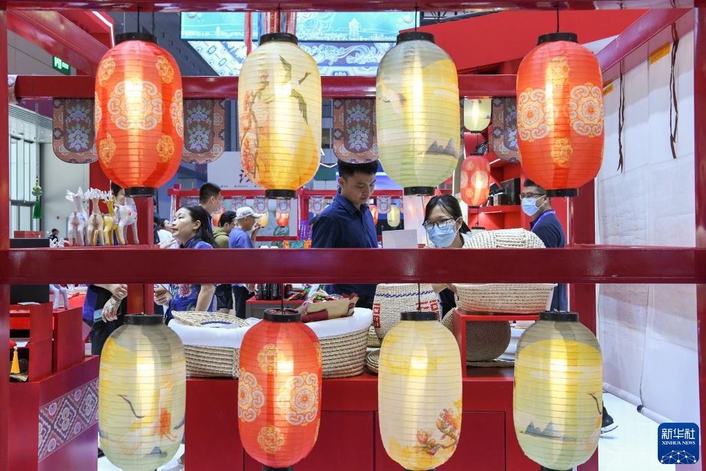 6月9日,在文博會(huì )“文旅消費館·一帶一路國際館”陜西展臺,觀(guān)眾瀏覽選購特色商品。