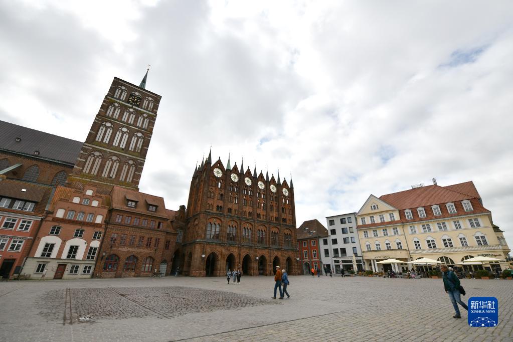 這是6月1日拍攝的德國施特拉爾松德城中心景色。