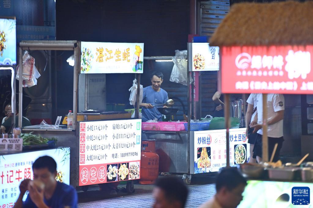 夏夜里,廣西柳州市柳北區新開(kāi)的廣雅民生夜市煙火氣升騰,炒田螺、螺螄粉、烤肉串等特色美食吸引眾多市民。