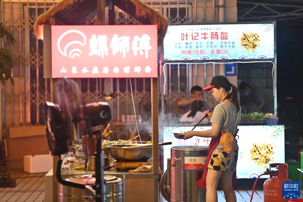 夏夜里,廣西柳州市柳北區新開(kāi)的廣雅民生夜市煙火氣升騰,炒田螺、螺螄粉、烤肉串等特色美食吸引眾多市民。