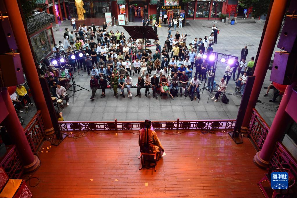 6月5日,游客在長(cháng)沙市坡子街火宮殿觀(guān)看長(cháng)沙市花鼓戲保護傳承中心表演。