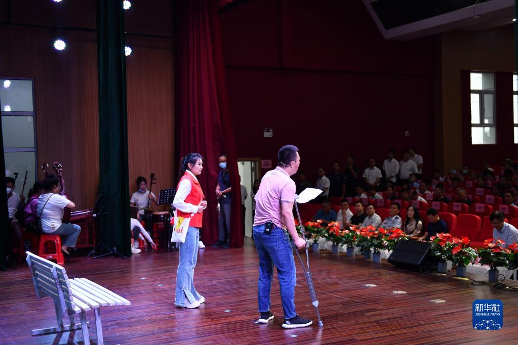 6月6日,在長(cháng)沙職業(yè)技術(shù)學(xué)院,長(cháng)沙市花鼓戲保護傳承中心的演員受邀在“安全生產(chǎn)月”活動(dòng)啟動(dòng)儀式上表演現代花鼓戲《開(kāi)車(chē)不喝酒》。