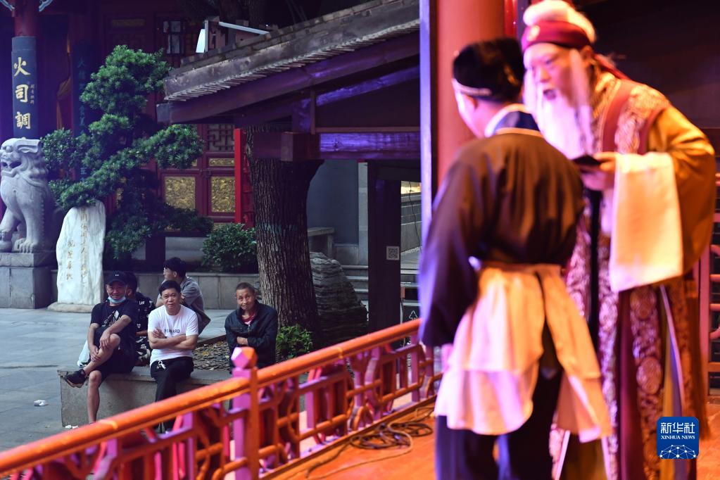 6月5日,游客在長(cháng)沙市坡子街火宮殿觀(guān)看長(cháng)沙市花鼓戲保護傳承中心表演。