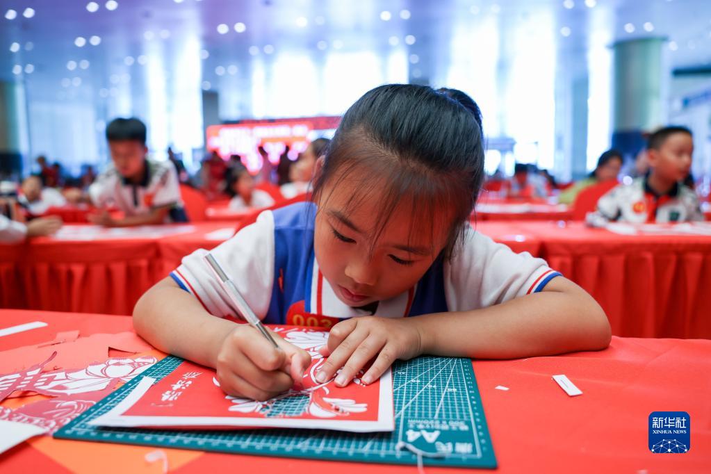6月10日,山東省濟南市歷下區舉行第四屆剪紙大賽,一名參賽小學(xué)生在現場(chǎng)創(chuàng )作剪紙作品。