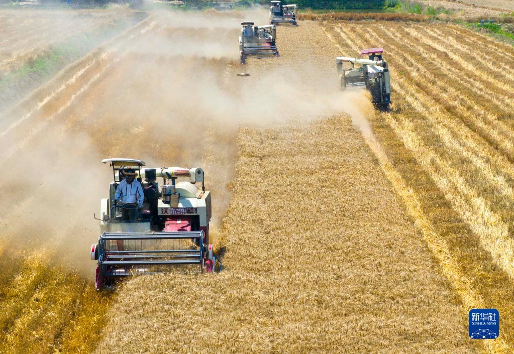 眼下,各地麥區麥收正酣。農機在麥田里穿梭,繪就美麗的收獲圖景。