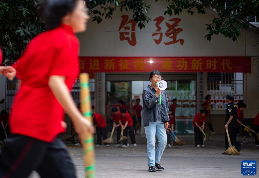自云南麗江華坪女子高中的學(xué)生2011年首次參加高考以來(lái),張桂梅校長(cháng)每年都要送考,這一送就是13年。這是高考前一天,張桂梅(中)與學(xué)生們在一起(6月6日攝)。