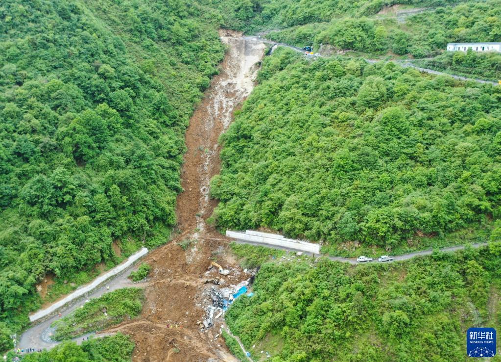 這是6月4日拍攝的樂(lè )山市金口河區永勝鄉鹿兒坪石板溝發(fā)生高位山體垮塌現場(chǎng)(無(wú)人機照片)。