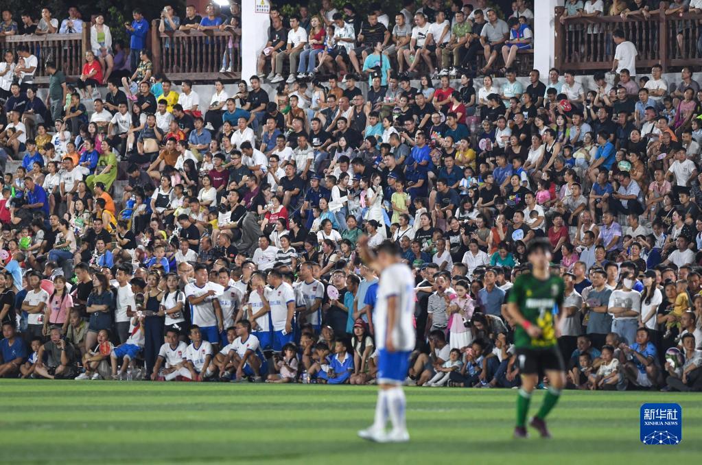 每逢比賽夜,球場(chǎng)周?chē)松饺撕?,每?chǎng)比賽都有上萬(wàn)名觀(guān)眾、相關(guān)內容全網(wǎng)瀏覽量超20億次、社會(huì )各界名人踴躍點(diǎn)贊……這是貴州省黔東南州榕江縣的“村超”足球比賽現場(chǎng)。