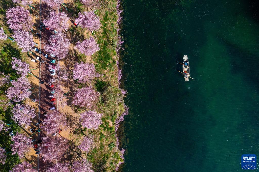 在浙江金華市浦江縣浦陽(yáng)江同樂(lè )段,工作人員乘船在打撈水面漂浮物(3月14日攝,無(wú)人機照片)。當地通過(guò)生態(tài)治理、河湖清淤、景觀(guān)改造、種植水生植物等綜合整治措施,造就浦陽(yáng)江畔春有櫻花落英、秋有杉葉火紅的四季美景,滿(mǎn)足群眾賞景及親水需求。浦陽(yáng)江也成功創(chuàng )建為“浙江省美麗河湖”。
