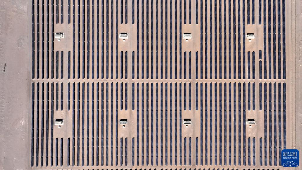 這是6月11日在海西蒙古族藏族自治州格爾木市拍攝的一座光伏電站(無(wú)人機照片)。