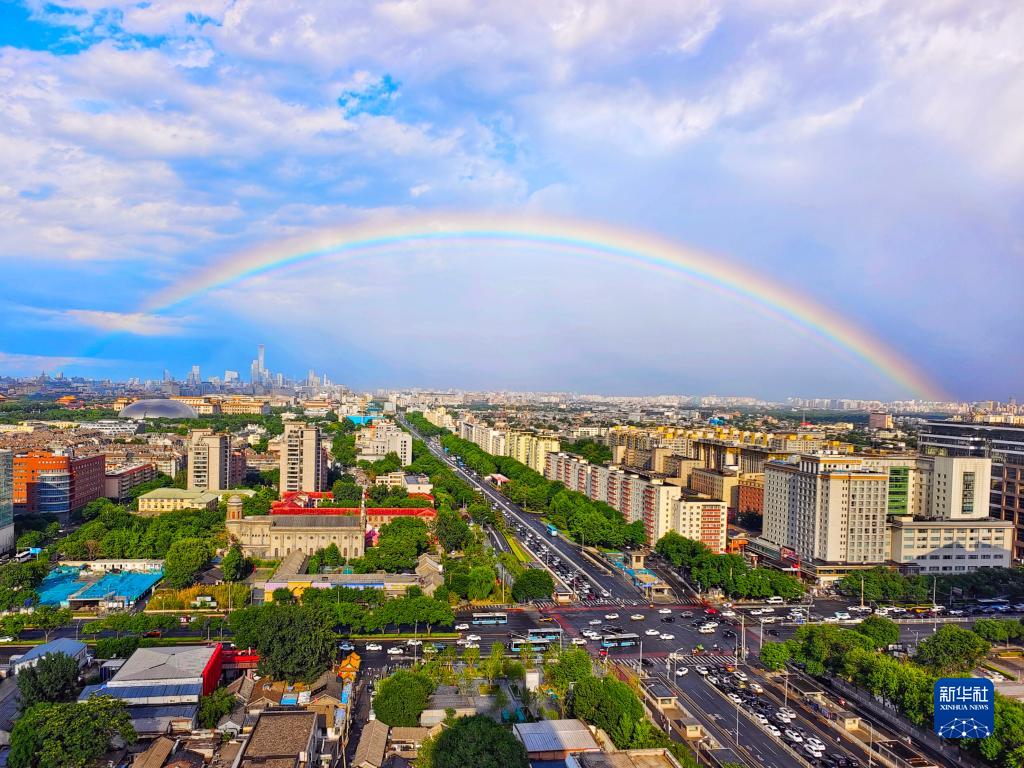 當日,一場(chǎng)降雨過(guò)后,北京上空出現彩虹。