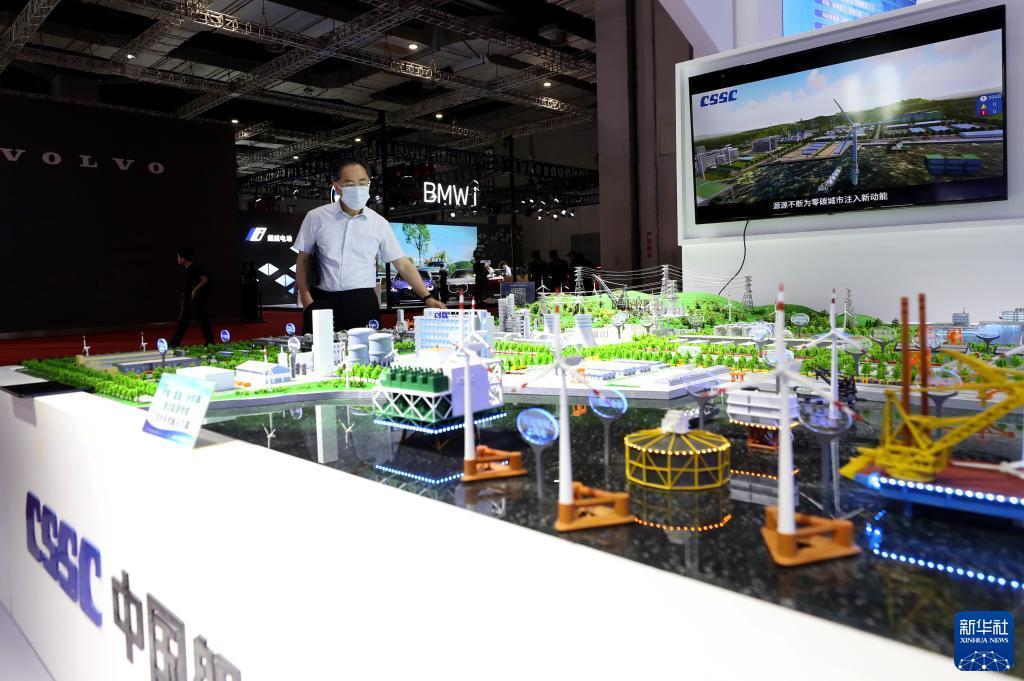 6月11日,參觀(guān)者在一個(gè)清潔能源綜合系統解決方案沙盤(pán)模型前駐足觀(guān)看。