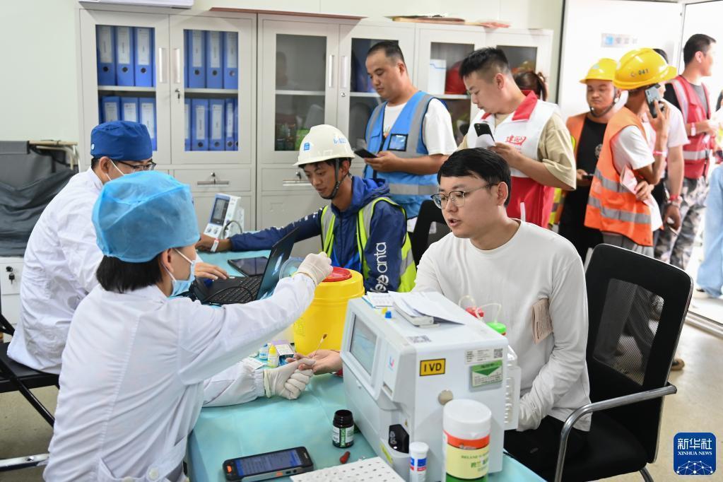 6月11日,報名參加無(wú)償獻血的青年志愿者在進(jìn)行獻血前的身體評估、化驗檢查。