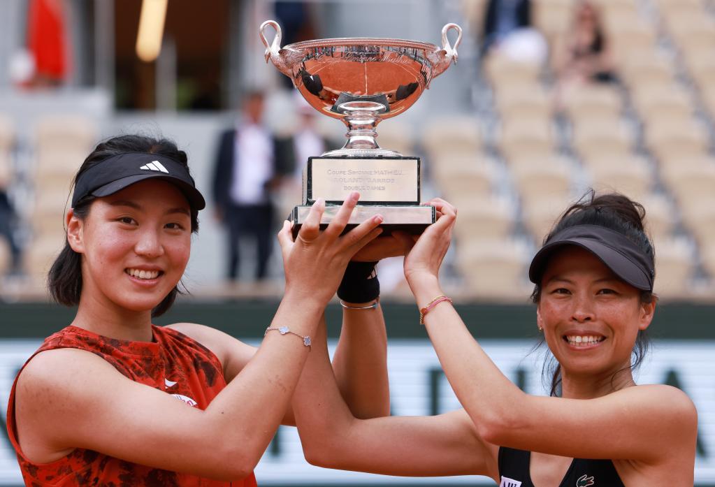 當日,在2023法國網(wǎng)球公開(kāi)賽女子雙打決賽中,王欣瑜(中國)/謝淑薇(中國臺北)以2比1戰勝費爾南德斯(加拿大)/湯森(美國),奪得冠軍。