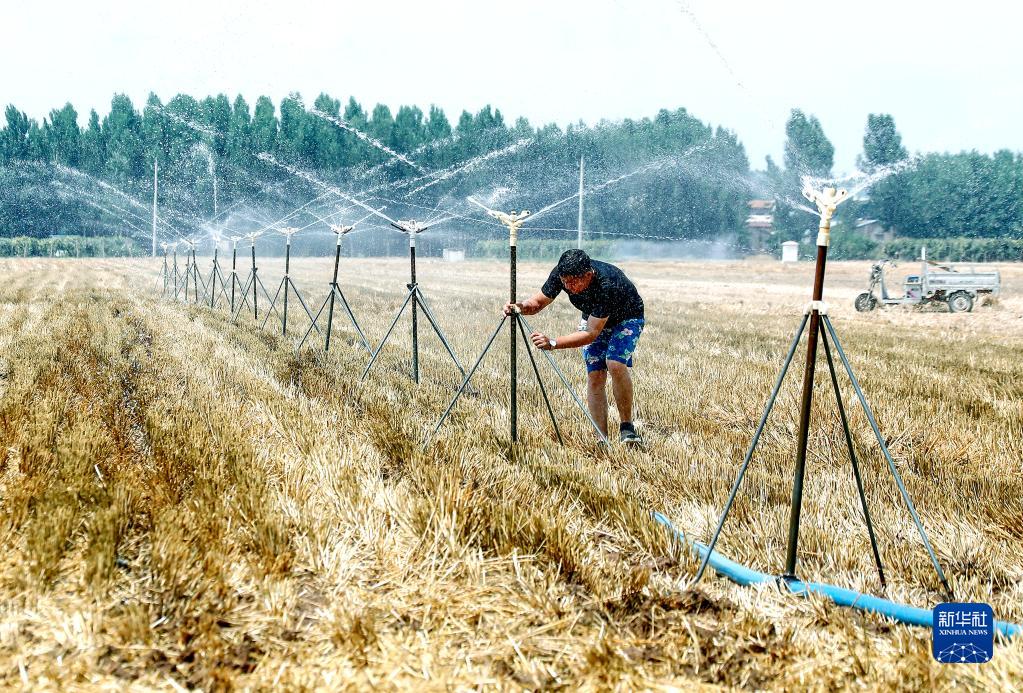 6月11日,河南省開(kāi)封市尉氏縣蔡莊鎮時(shí)村的村民對收割后的麥田進(jìn)行澆灌,準備播種小秋作物。