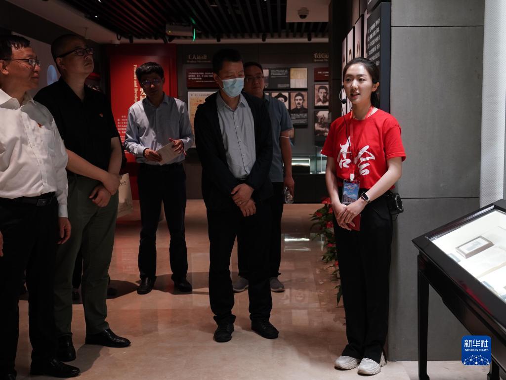 6月7日,在中共二大會(huì )址紀念館,上海中醫藥大學(xué)的學(xué)生志愿者為參觀(guān)者們講解。