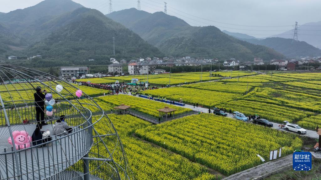 在浙江杭州臨安區青山湖街道郎家村“共富稻田”,游客觀(guān)賞春日美景(4月1日攝)?!肮哺坏咎铩倍ㄎ欢喙δ芴飯@農旅綜合體,陸續打造了妙哉花園、稻田觀(guān)光道、稻田餐廳、稻田茶吧等鄉村旅游特色節點(diǎn),吸引城市居民前來(lái)體驗戶(hù)外農田生活。