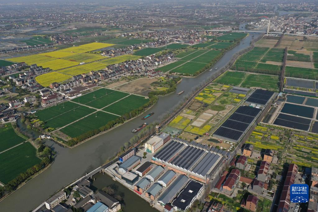 浙江杭州臨平區京杭大運河沿岸的村莊(無(wú)人機照片,3月15日攝)。