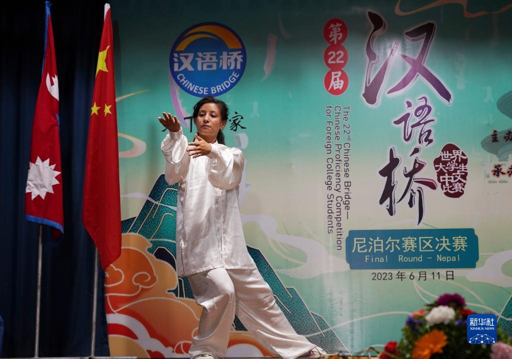 第22屆“漢語(yǔ)橋”世界大學(xué)生中文比賽尼泊爾賽區決賽11日在勒利德布爾市舉行。10名參賽選手以自身經(jīng)歷闡釋對“天下一家”這一演講主題的看法,并展示了中文歌曲演唱、少林武術(shù)等才藝。