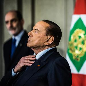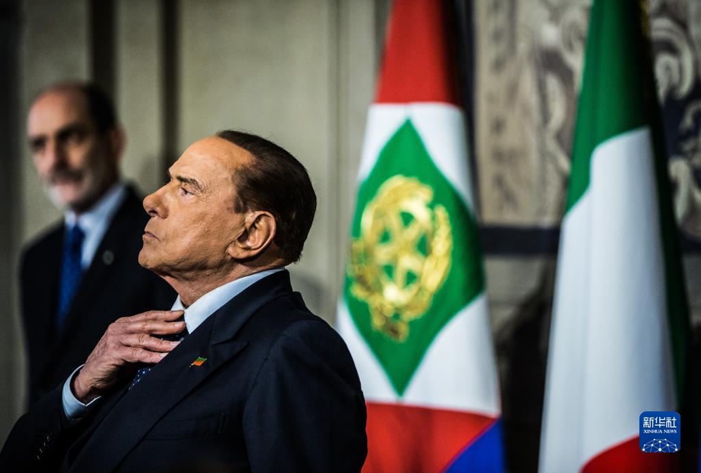 這張資料照片顯示的是,2018年4月12日,意大利前總理貝盧斯科尼在羅馬出席記者會(huì )。