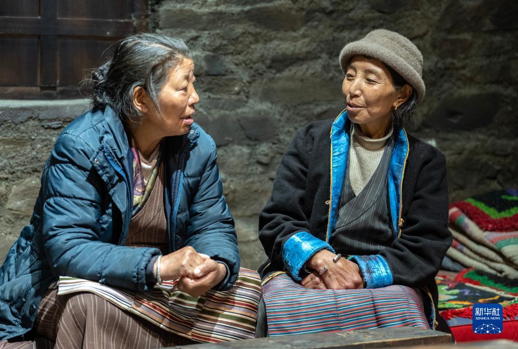 6月10日,卓嘎(右)和央宗坐在桑杰曲巴故居中追憶往事。