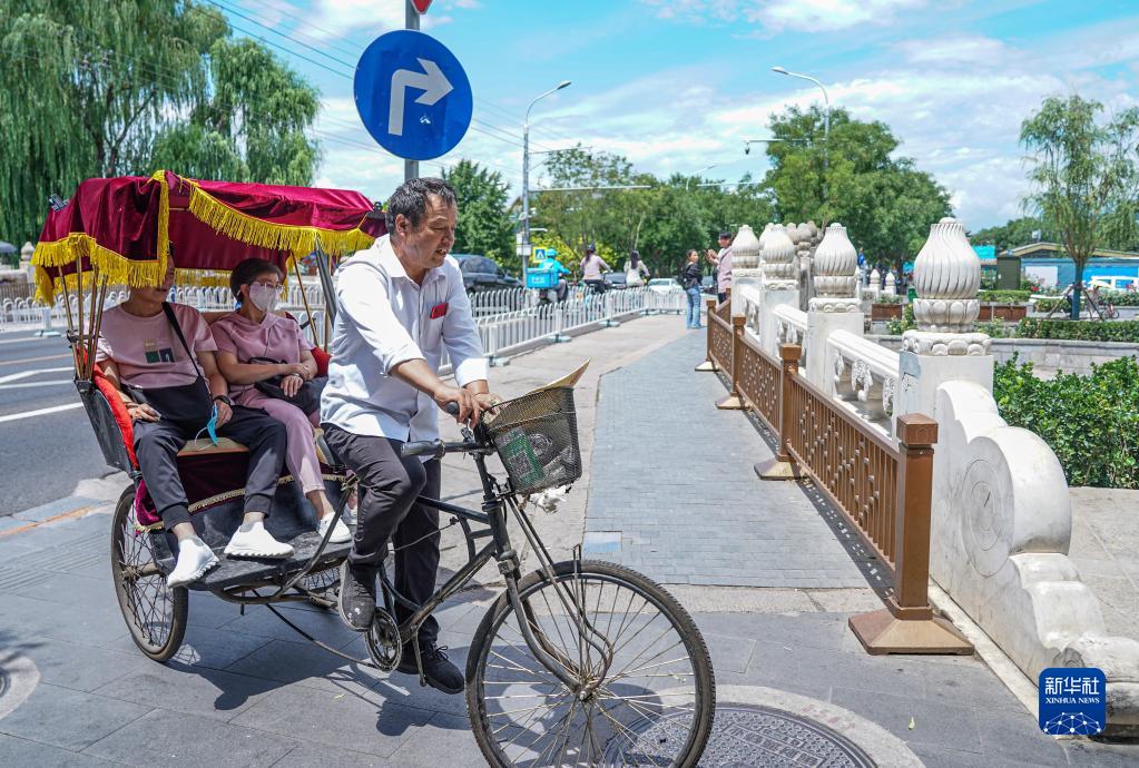 6月11日,游客乘坐人力三輪車(chē)經(jīng)過(guò)始建于元代的萬(wàn)寧橋。新華社記者 陳鐘昊 攝