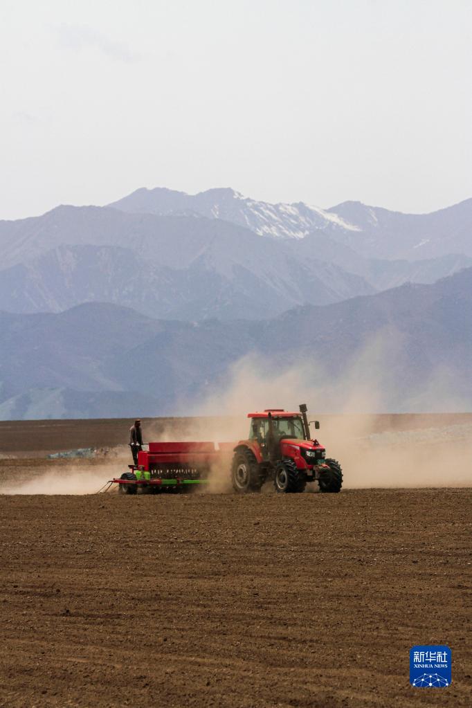 初夏時(shí)節,地處祁連山下的甘肅山丹馬場(chǎng)農業(yè)工人搶抓農時(shí)播種牧草,一派繁忙景象。新華社發(fā)(陳禮 攝)