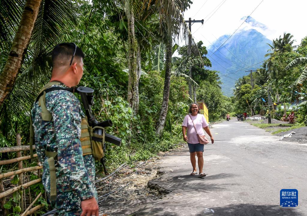 6月12日,一名菲律賓士兵在菲律賓東北部阿爾拜省的馬榮火山附近執勤。