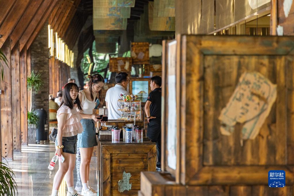 6月10日,在重慶故宮文物南遷紀念館,游客在角樓咖啡店內選購文創(chuàng )產(chǎn)品。