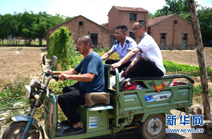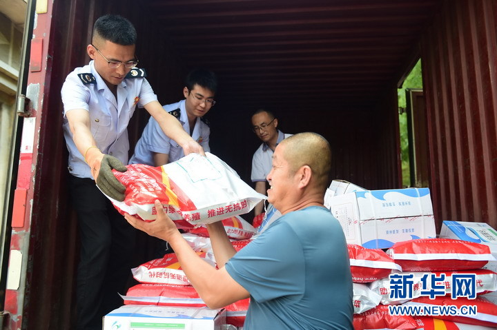 6月13日,黨建聯(lián)建活動(dòng)上稅務(wù)人員為農民送去生物飼料。新華網(wǎng)發(fā)(常征 攝)