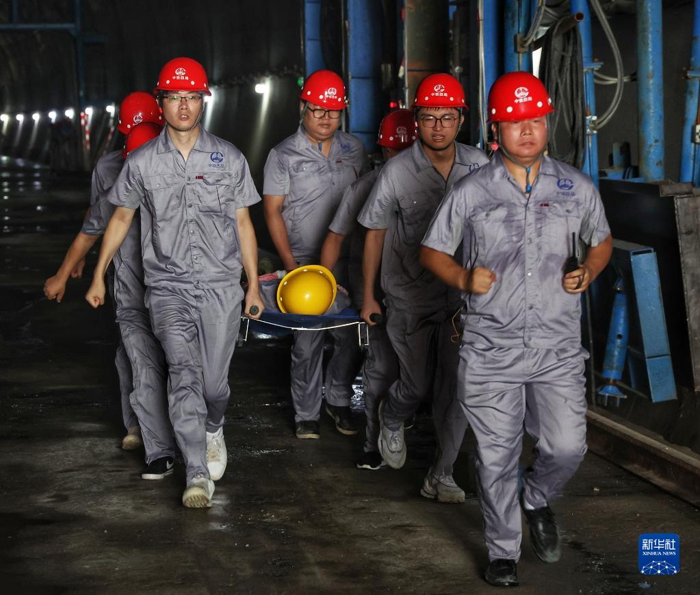 6月13日,中鐵四局應急救援隊演練將“受困人員”從隧道坍塌現場(chǎng)救援至安全區域并送醫搶救。