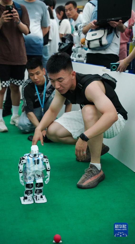 6月13日,選手在操控機器人進(jìn)行仿人點(diǎn)球比賽。