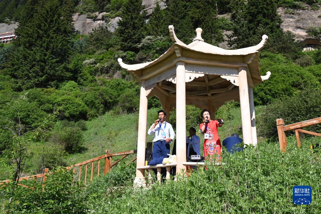 6月13日,在和政縣松鳴巖景區,花兒愛(ài)好者演唱花兒。