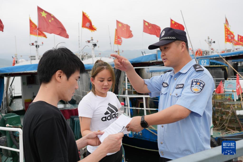 6月13日,在強蛟鎮碼頭,民警向游客宣傳鳥(niǎo)類(lèi)保護理念。