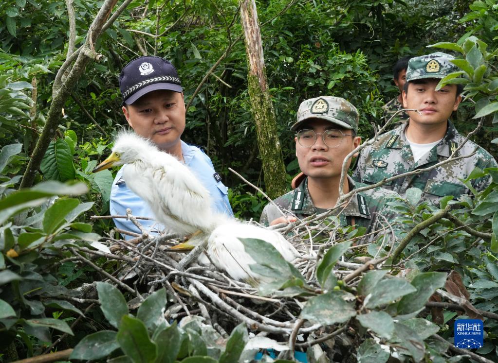 6月13日,海島護鳥(niǎo)隊的成員在一座島上查看雛鳥(niǎo)生長(cháng)情況。