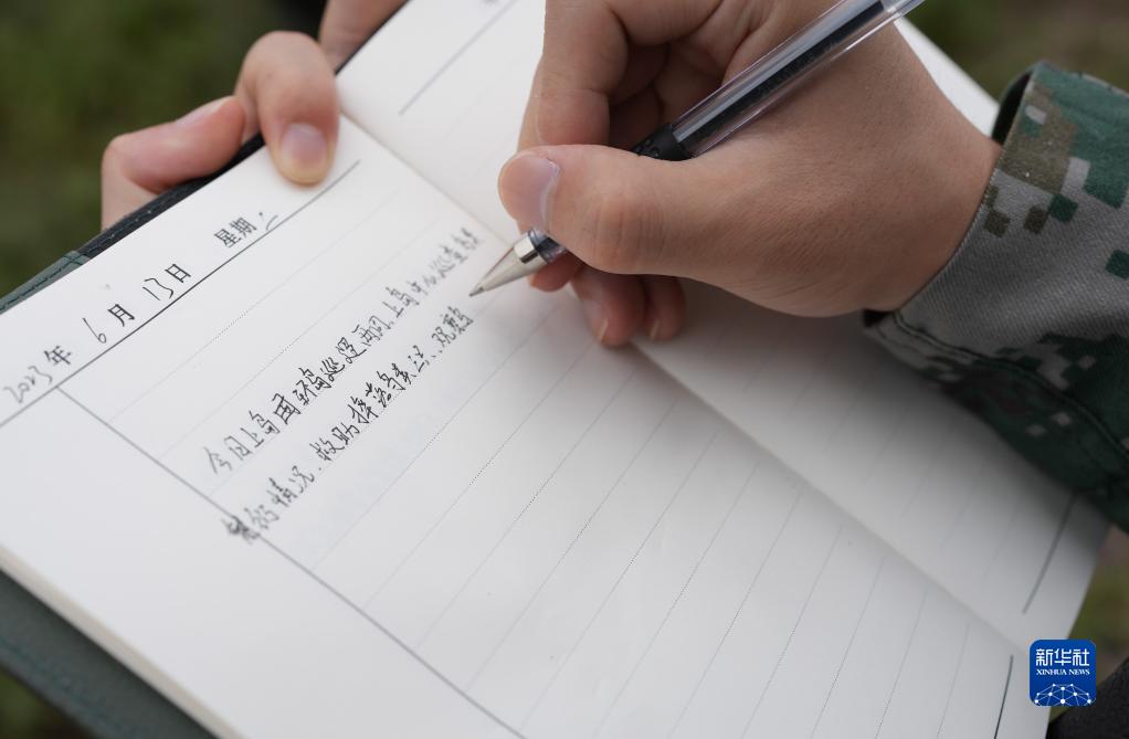 6月13日,海島護鳥(niǎo)隊的成員在寫(xiě)巡邏筆記。