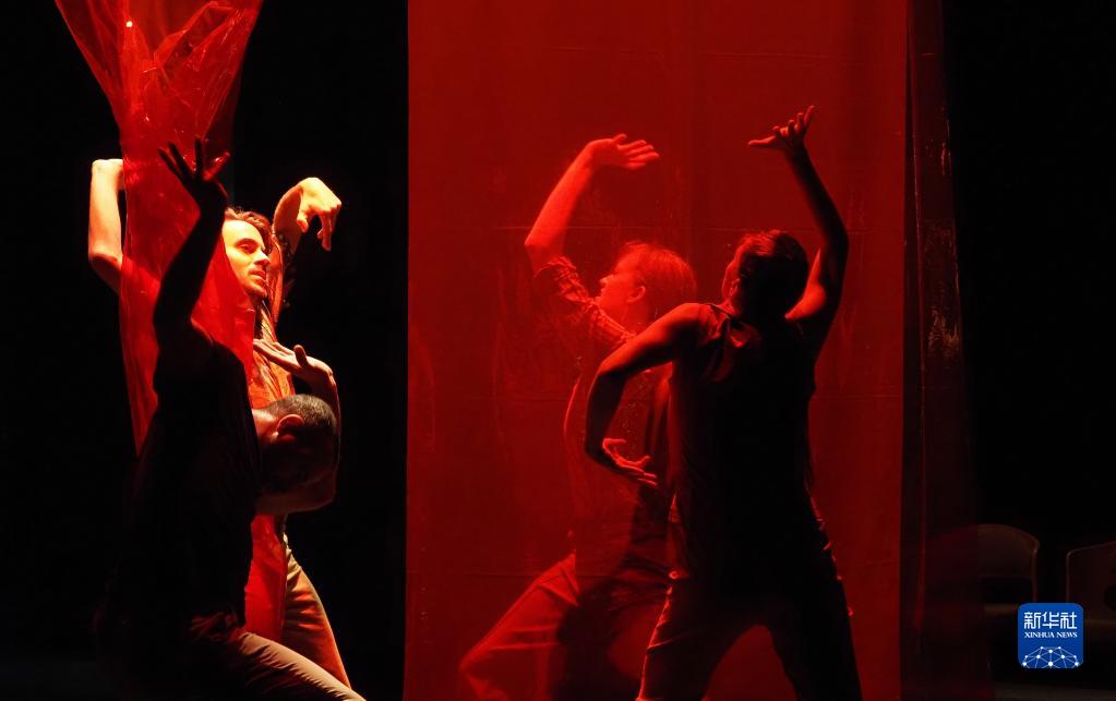 6月13日,瑞士約書(shū)亞·蒙登舞蹈團的演員在上海國際舞蹈中心實(shí)驗劇場(chǎng)表演《幸福的降落傘》。
