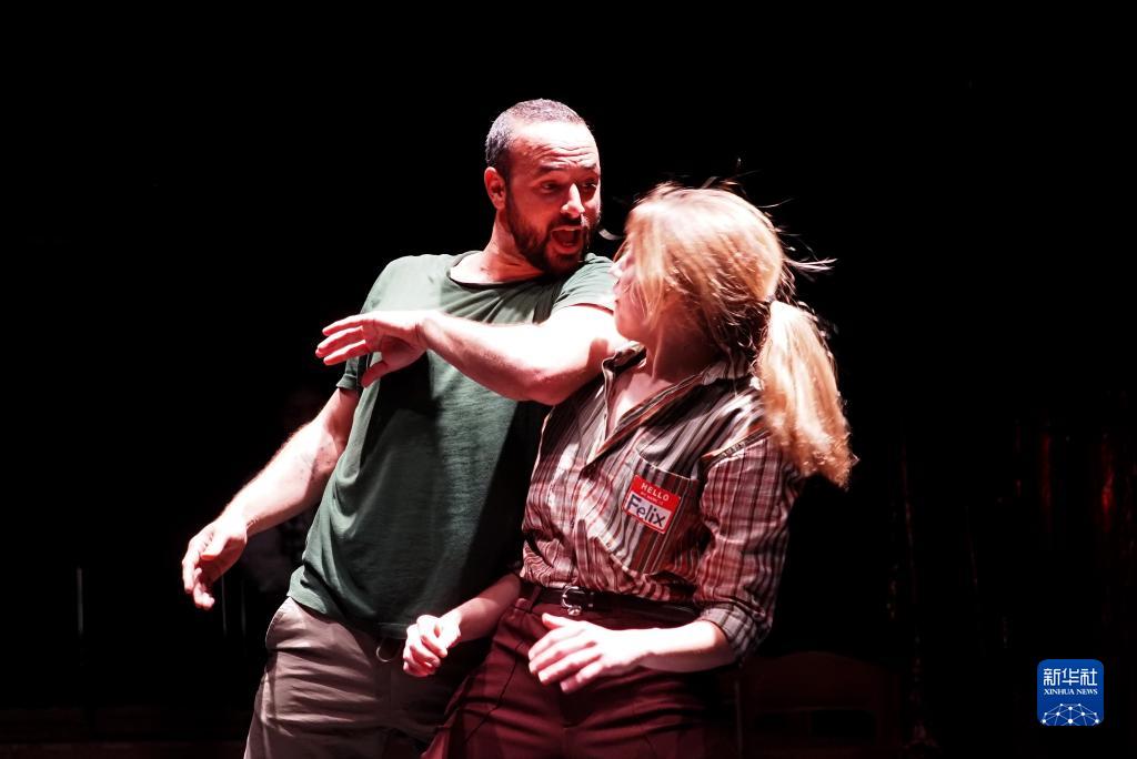 6月13日,瑞士約書(shū)亞·蒙登舞蹈團的演員在上海國際舞蹈中心實(shí)驗劇場(chǎng)表演《幸福的降落傘》。