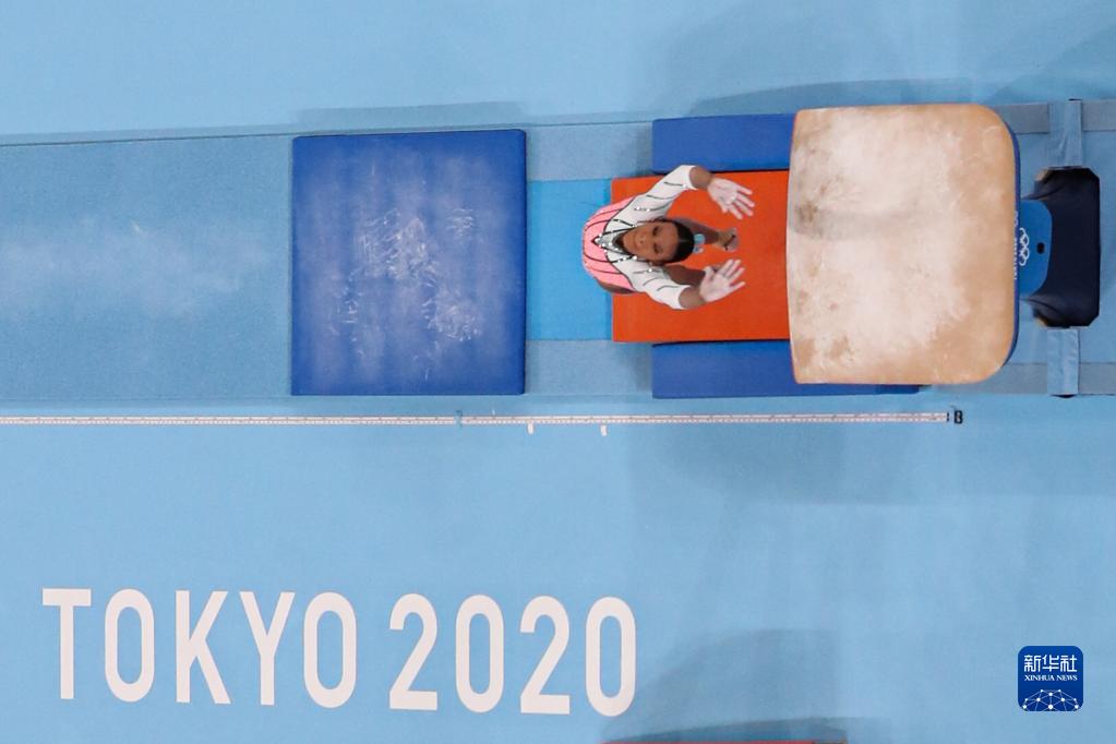 圖為巴西選手安德拉德在東京奧運會(huì )女子跳馬比賽中(2021年8月1日攝)。