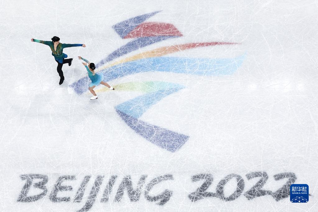 圖為中國選手王詩(shī)玥(右)和柳鑫宇在北京2022年冬奧會(huì )花樣滑冰冰上舞蹈自由舞比賽中(2022年2月14日攝)。