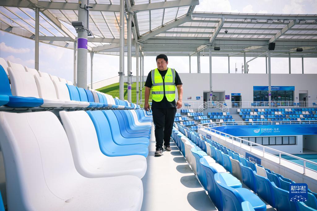 6月9日,汪祥巡查桐廬馬術(shù)中心的看臺區域。