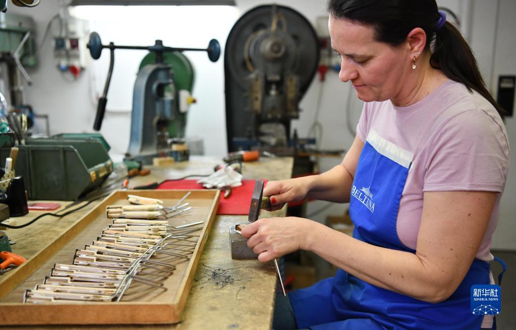 5月29日,在意大利卡斯特爾菲達多,貝爾杜納品牌手風(fēng)琴工匠裝配手風(fēng)琴鍵盤(pán)。