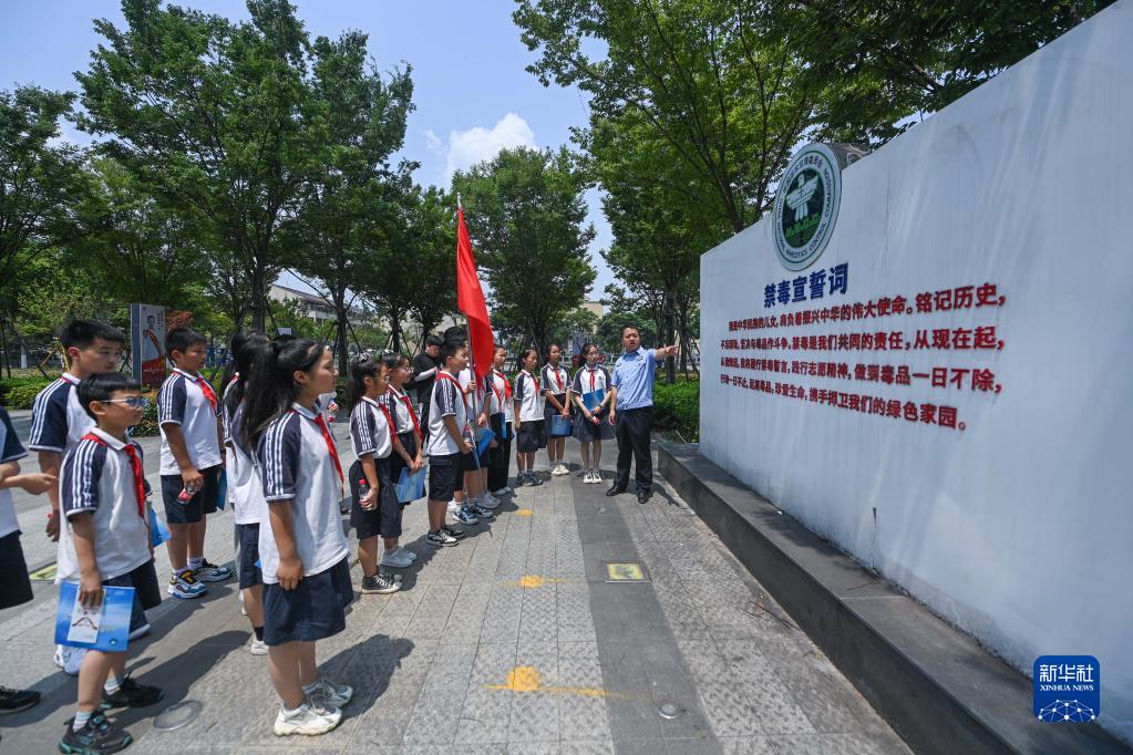 在第36個(gè)國際禁毒日來(lái)臨前,浙江省湖州市吳興區織里鎮織北派出所民警在織里鎮禁毒主題公園為湖州市織里實(shí)驗小學(xué)的師生開(kāi)展禁毒主題宣傳活動(dòng)。