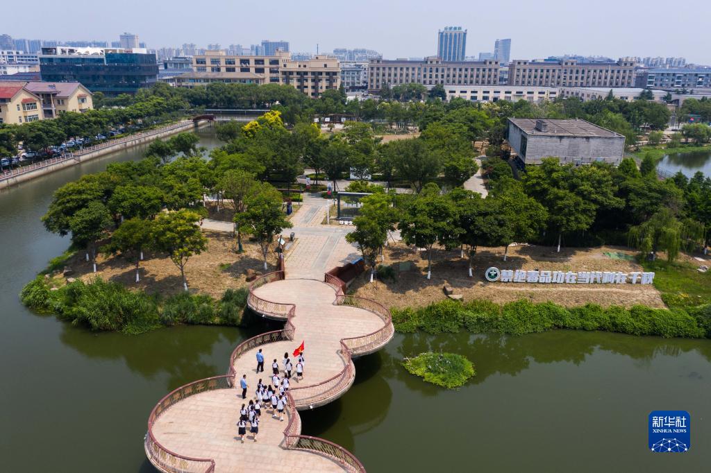 6月14日,織里鎮織北派出所民警帶領(lǐng)小學(xué)生參觀(guān)禁毒主題公園(無(wú)人機照片)。