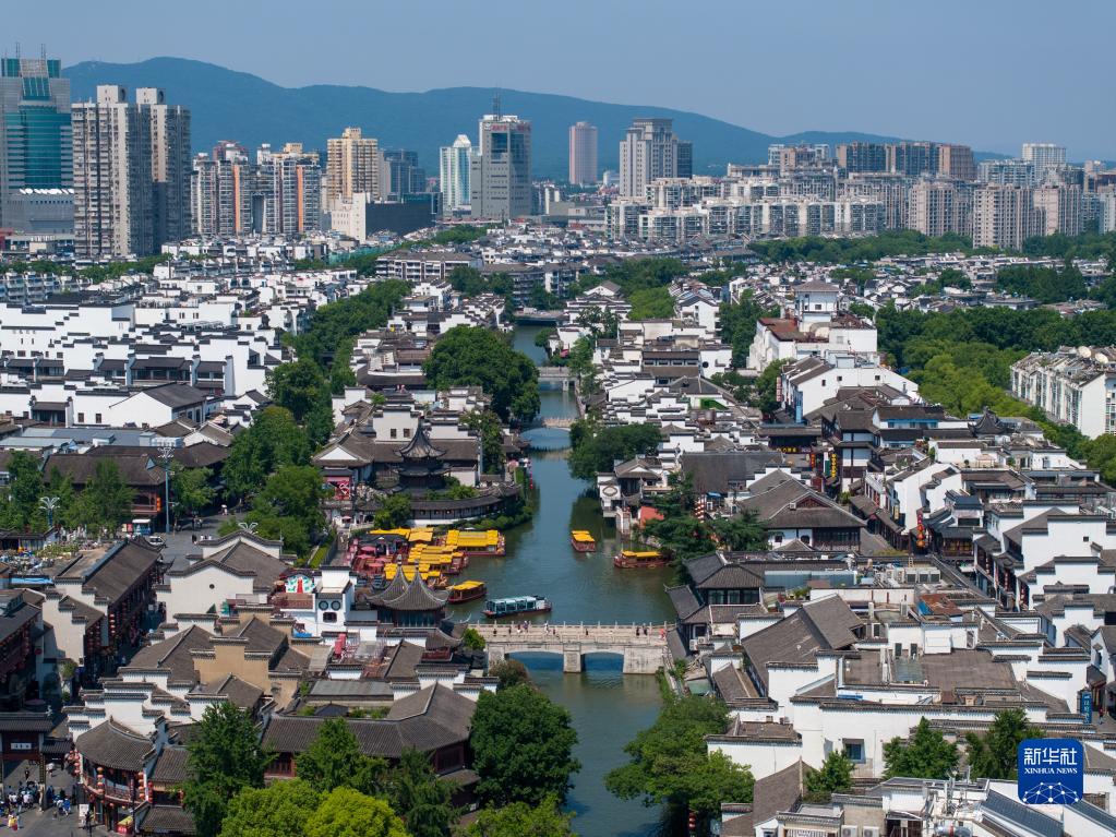 游客在南京夫子廟景區參觀(guān)游玩(6月12日攝,無(wú)人機照片)。
