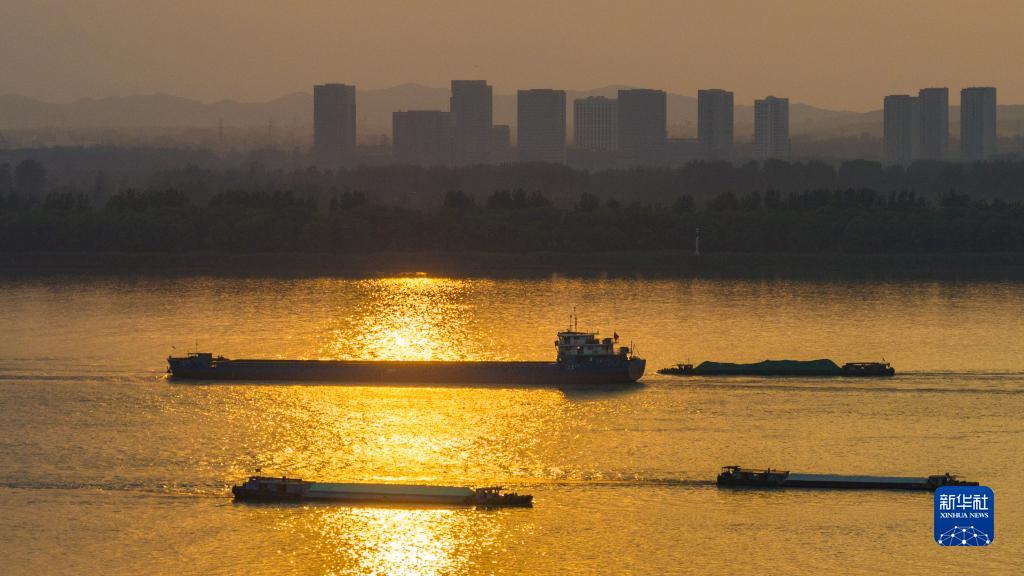 貨輪在長(cháng)江南京段航行(6月13日攝,無(wú)人機照片)。